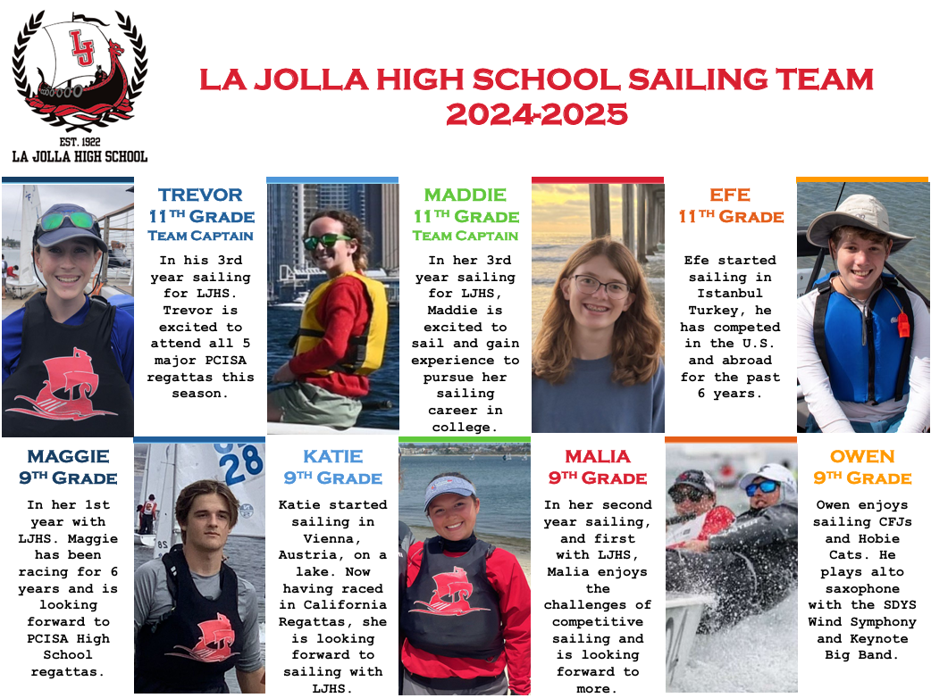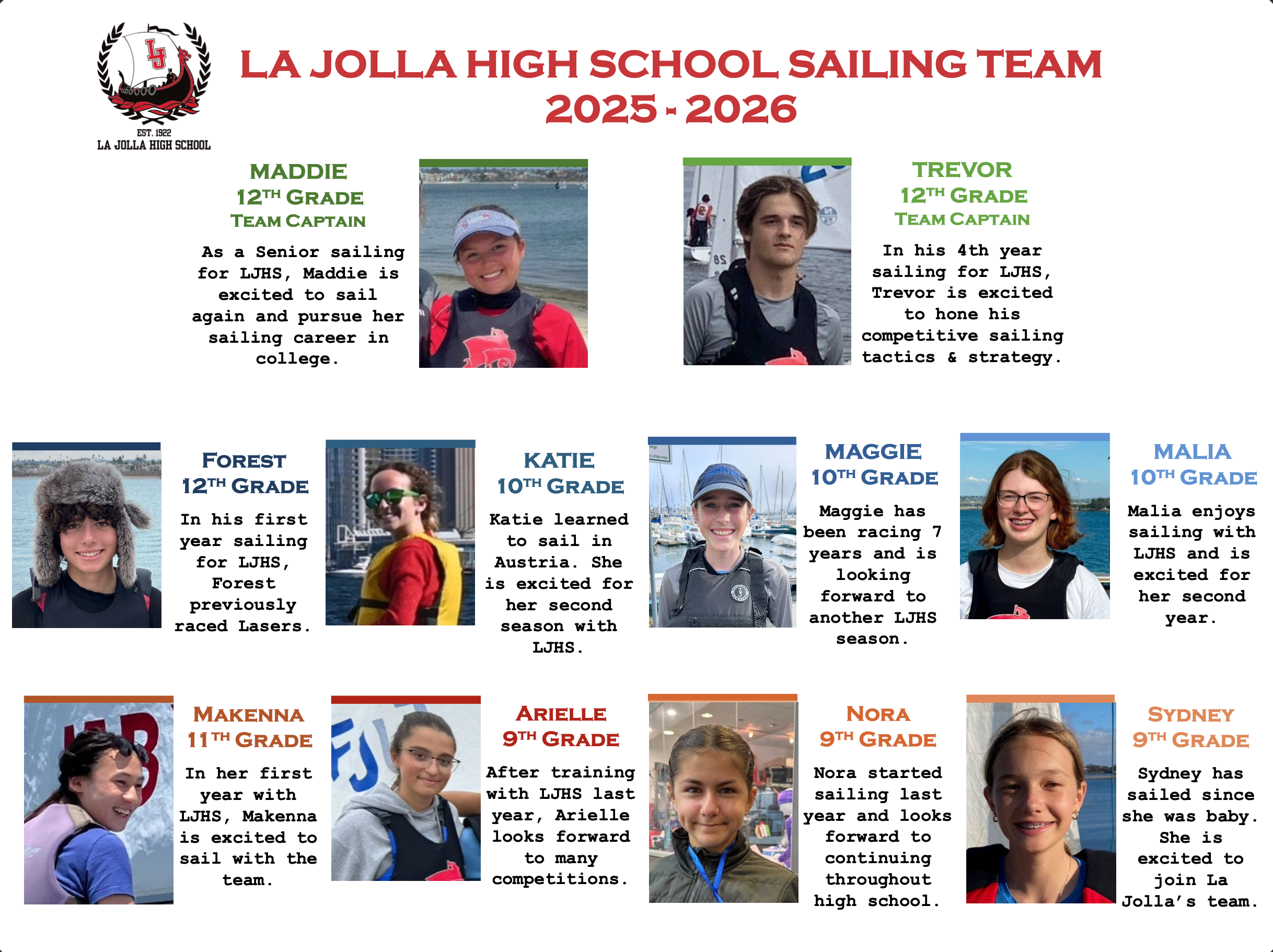 In his fourth year sailing for LJHS, Trevor is excited to attend the major PCISA regattas this season.